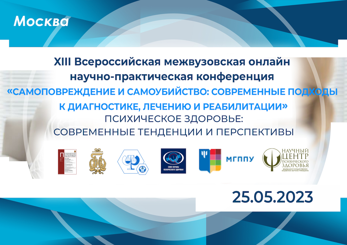 4. XIII Всероссийская межвузовская онлайн научно-практическая конференция «Самоповреждение и самоубийство: современные подходы к диагностике, профилактике, лечению и реабилитации» (25 мая). Срок подачи тезисов для публикации и заявок на выступления – до 15 мая.